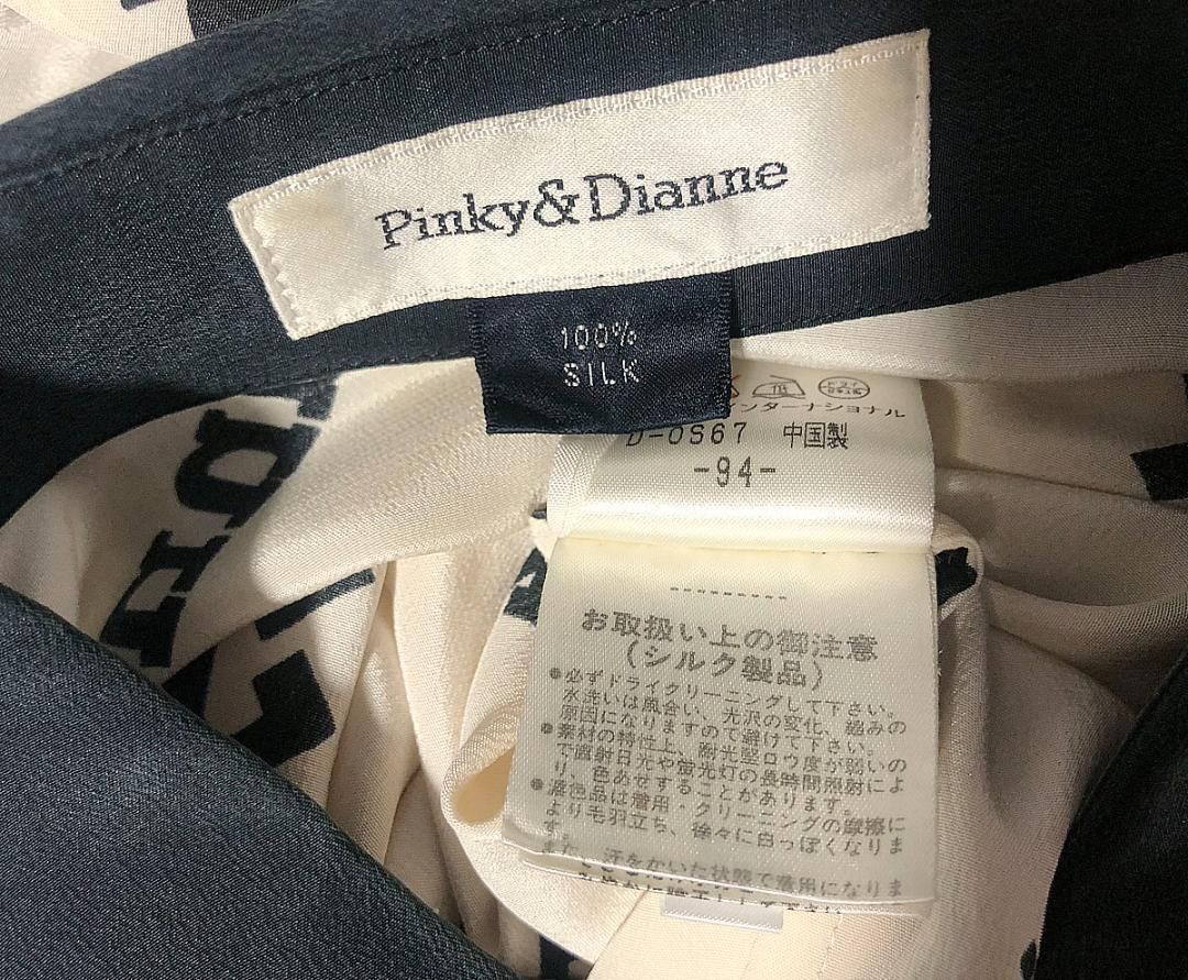 希少/高級■ピンキーアンドダイアン Pinky&Dianne■ロゴプリント デカ襟 シルク 比翼ボタン L/S シャツ