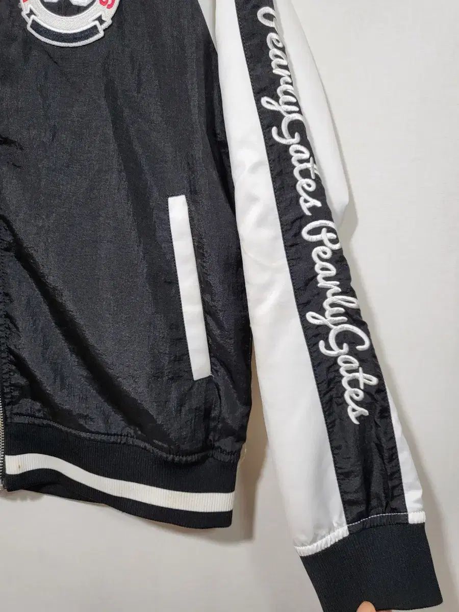 これはパリゲイツの女性用ゴルフブームジャケットです。腕に白い線の点があります。バストに大きめのサイズでParis Gatesのロゴが埋め込まれているので、デザインが際立っています。ご不明な点がなければ、すぐに安心してお支払いいただけます!