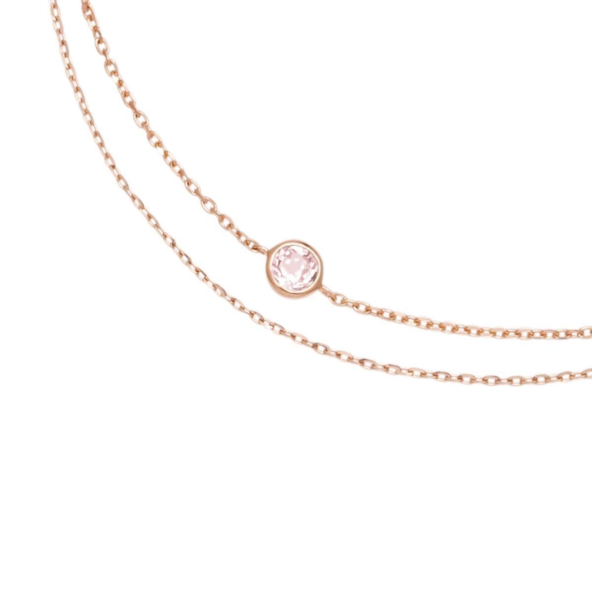 優しい雰囲気が魅力のピンクゴールドにピンクのサファイアとトパーズがきらめくチェーンの2連ブレスレット。優しい色の組み合わせが女性らしく、可憐な印象のデザインです。