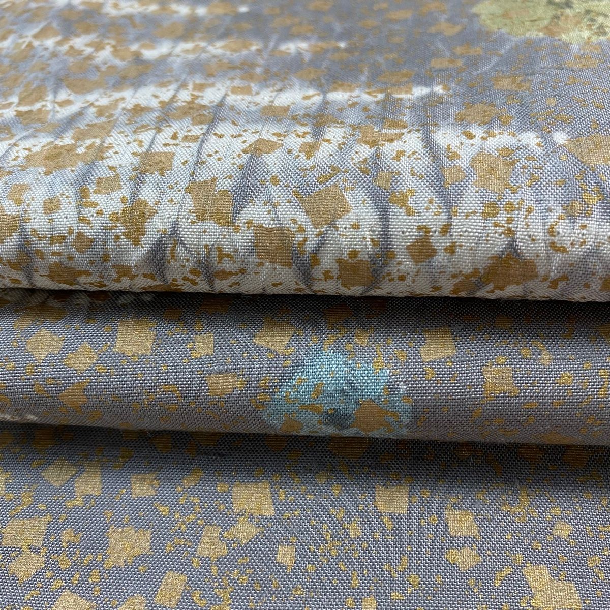袋帯 落款 証紙 牛首紬地 白山工房 箔散らし 幾何学模様 絞り 金彩 灰紫 全通 正絹