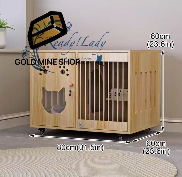 木製 キャットハウス 猫用コンドミニアム 木製キャットハウス 木製大型キャットハウス キャスター付き室内用キャットエンクロージャー 爪とぎポスト付き大空間キャットケージ ユニバーサルホイール付き 複数の換気設計 80 x 60 cm