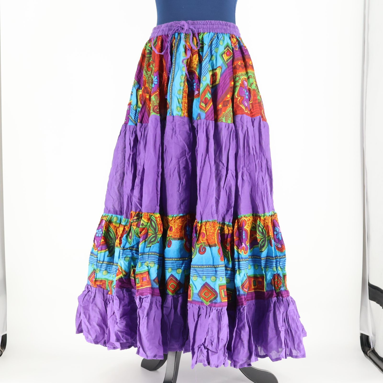 #ベリーダンス #ジプシースカート #インド製 #パープル #水色 #オレンジ #MYST #ボリューム #フリル #異国情緒 #鮮やか #柄 #ロングスカート #広がる裾 #華やか #ダンス衣装 #ダンスコスチューム #ステージ衣装 #新品 #新品 #ENUTSU