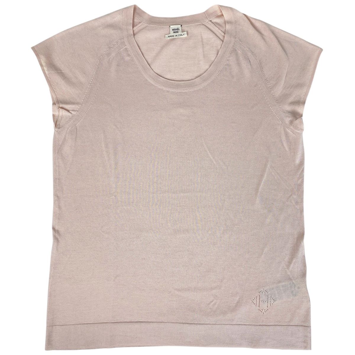 エルメス HERMES クルーネック カットソー 半袖 トップス 綿 絹 ピンク レディース