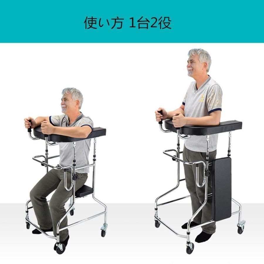 介護 歩行器 リハビリ 高さ調整 ブレーキ付き 歩行補助 折り畳み コンパクト 組み立て 簡単 座面付 キャスター付き 高齢者 軽量 グリップ付