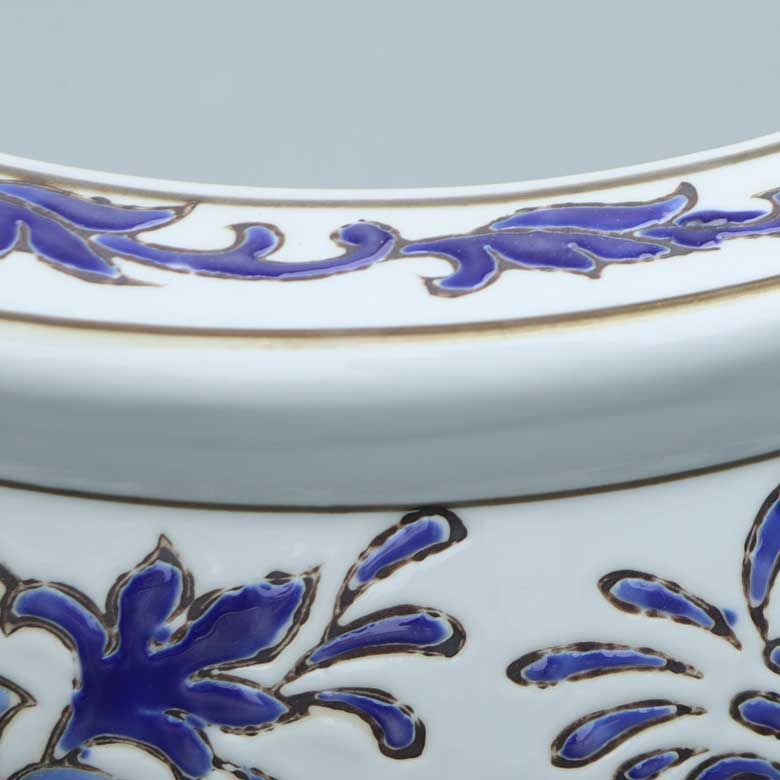 ◆和モダン風の空間づくりに最適な染付の陶器水鉢です。