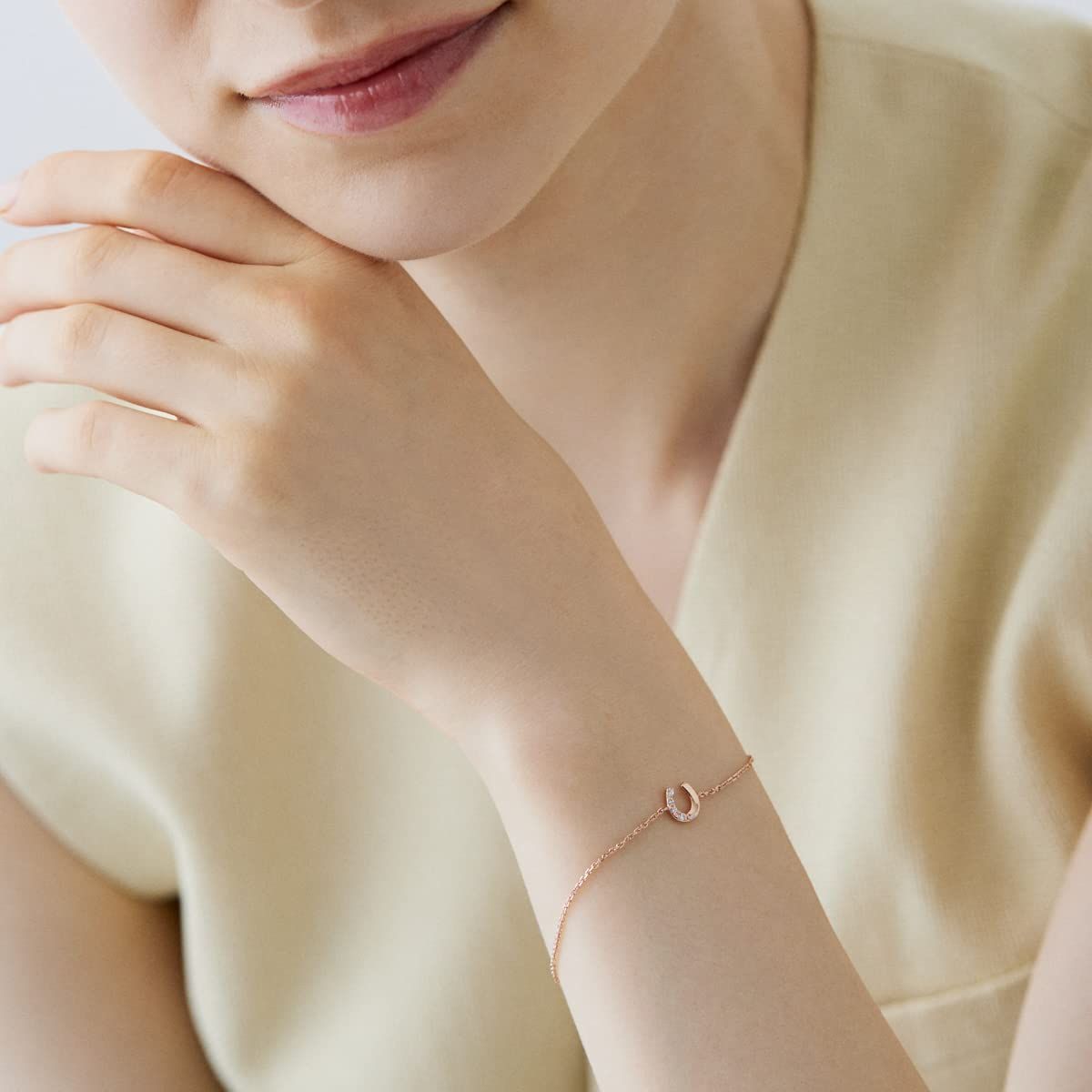 幸運を溜め込むとされる馬蹄モチーフのブレスレット。ライン上に留めたキュービックジルコニアが、腕周りに輝きを添えてくれます。シンプルなデザインはどんなファッションにも合わせやすく、大切な方へのギフトとしてもオススメです。