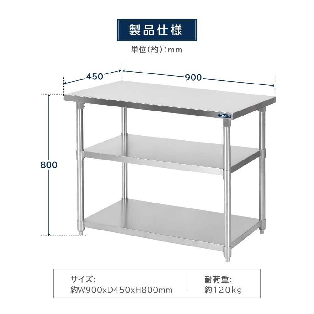 業務用 ステンレス 作業台 3段タイプ 調理台 W 90×H 80×D 45 cm キッチン作業台 kot 3 ba-9045