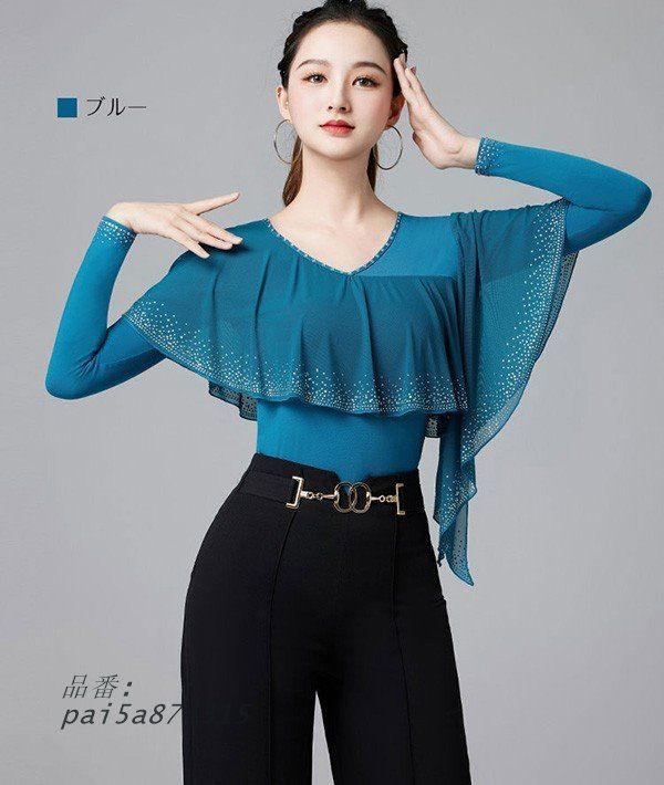社交ダンス トップス 社交ダンス衣装 レオタード式 トップス 大きいサイズ フリル ダンス用シャツ ダンスTシャツ 。 社交ダンス ラテンダンス ダンスウェア 練習着 長袖 カラオケ衣装 大きいサイズ レッスンウェアS1M3