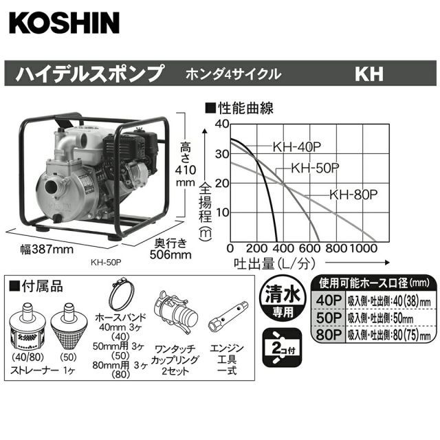 KOSHIN 工進 4サイクル エンジンポンプ ハイデルスポンプ KH-80 P SEH-80 P-AAA-2 80 mm 3インチ ホンダエンジン搭載