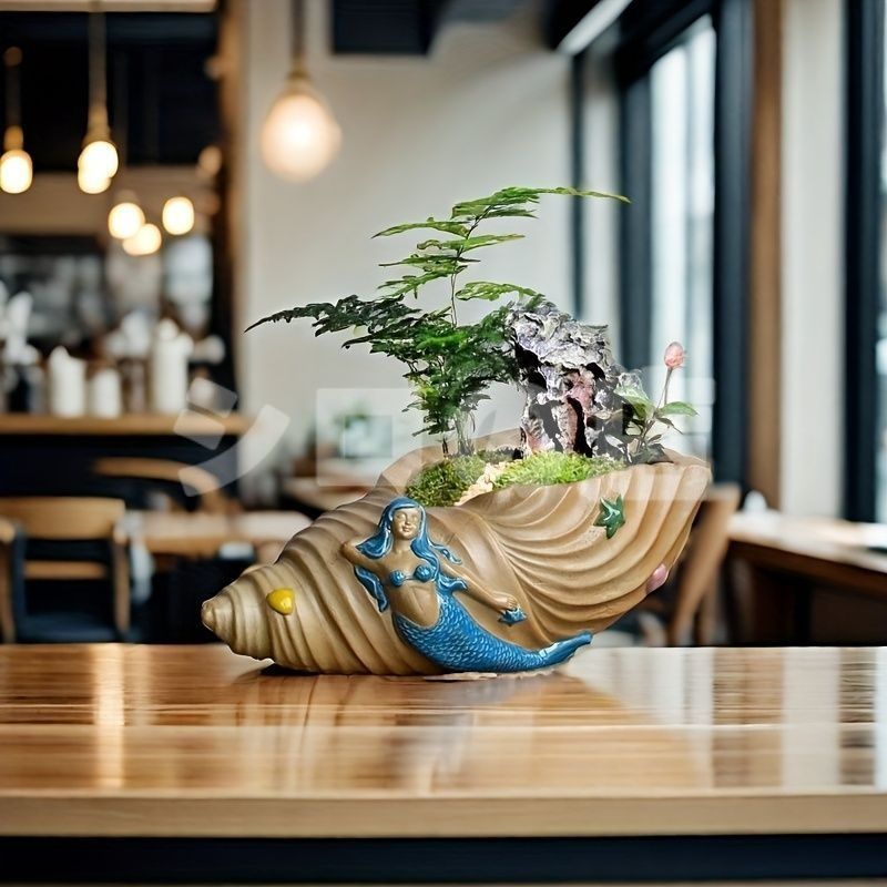 鉢植え 植木鉢 プランター プラントポット フラワーポット ガーデニング セラミック 屋内 室内 インテリア 庭 玄関 貝殻と人魚 マーメイド 多肉植物 サボテン オシャレ ギフト プレゼント 棚装飾