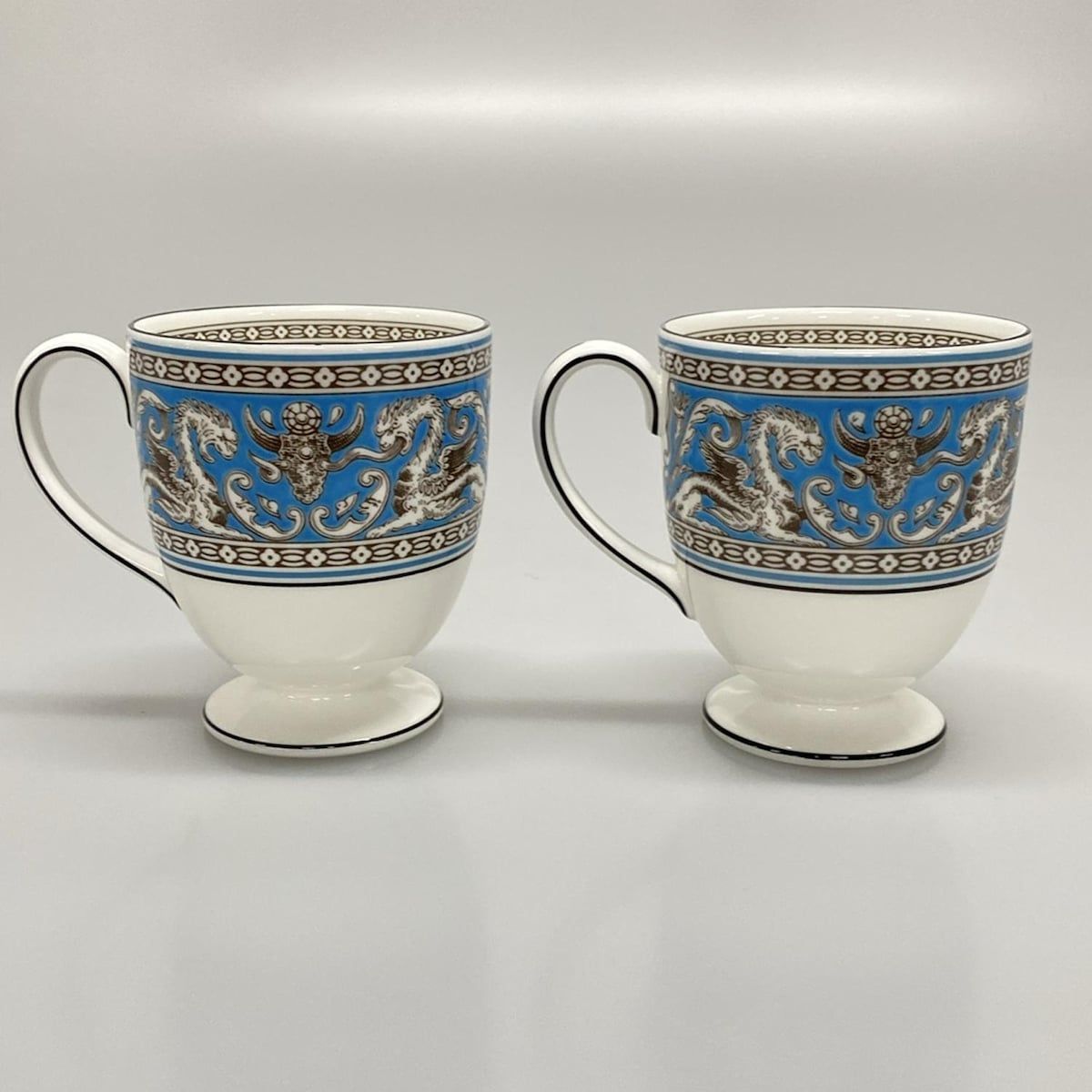 WEDG WOOD ウェッジウッド 食器 ロレンティーンターコイズ 白×ブルー×マルチ マグカップ×2点