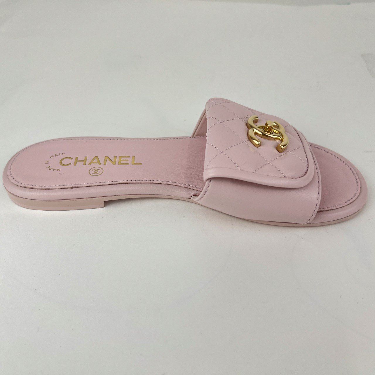 CHANEL シャネル サンダル ミュール CCロゴ キルティングビーチサンダル ラムスキン Pink ピンク ビーチサンダル