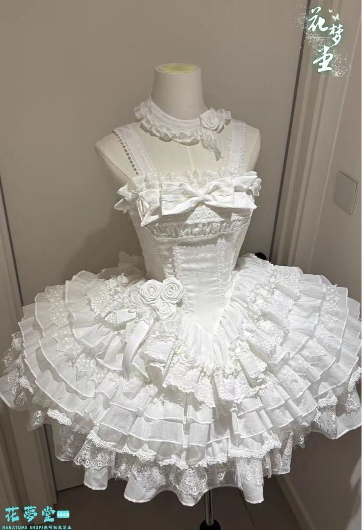 25年 ロリータ ホワイト ゴスロリ ドレス フリル付き コスプレ かわいい 撮影会 舞台 イベント 原野空間-55