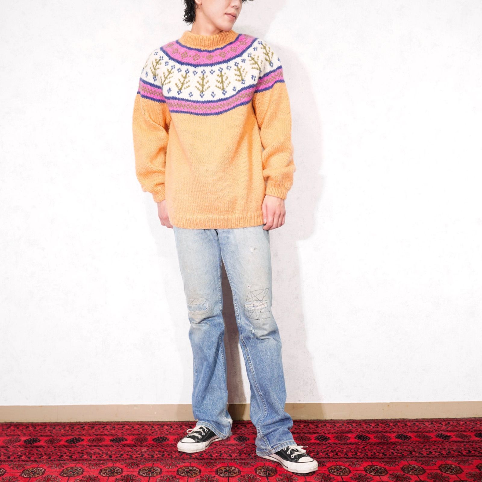 USA VINTAGE ORANGE COLOR NORDIC PATTERNED DESIGN KNIT|アメリカ古着オレンジカラーノルディック柄デザインニット