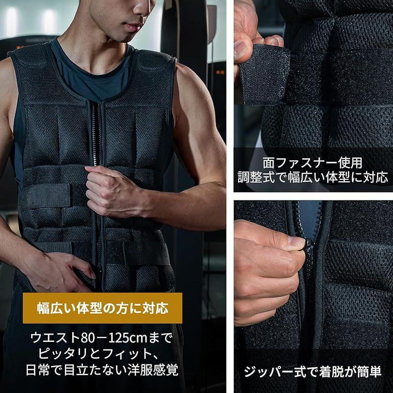 商品名:AIFY ウエイトベスト ウエイトジャケット 加重ベスト 重量調節可 10kg ウェイトベスト パワーベスト 筋トレ トレーニング ウォーキング ジャケット 肩パッド付き 速乾 通気 負荷運動