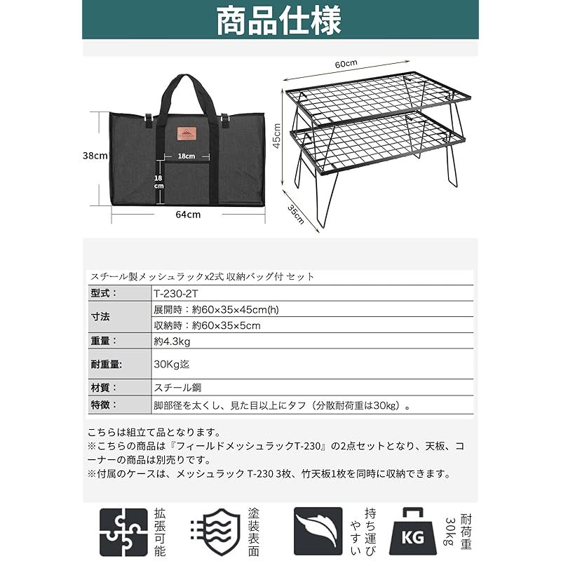 商品名:キャンピングムーン(CAMPING MOON) フィールドラック キャンプ ラック 折り畳みラック ブラック 収納バック付き 本体T-230 2点セット T-230-2T
