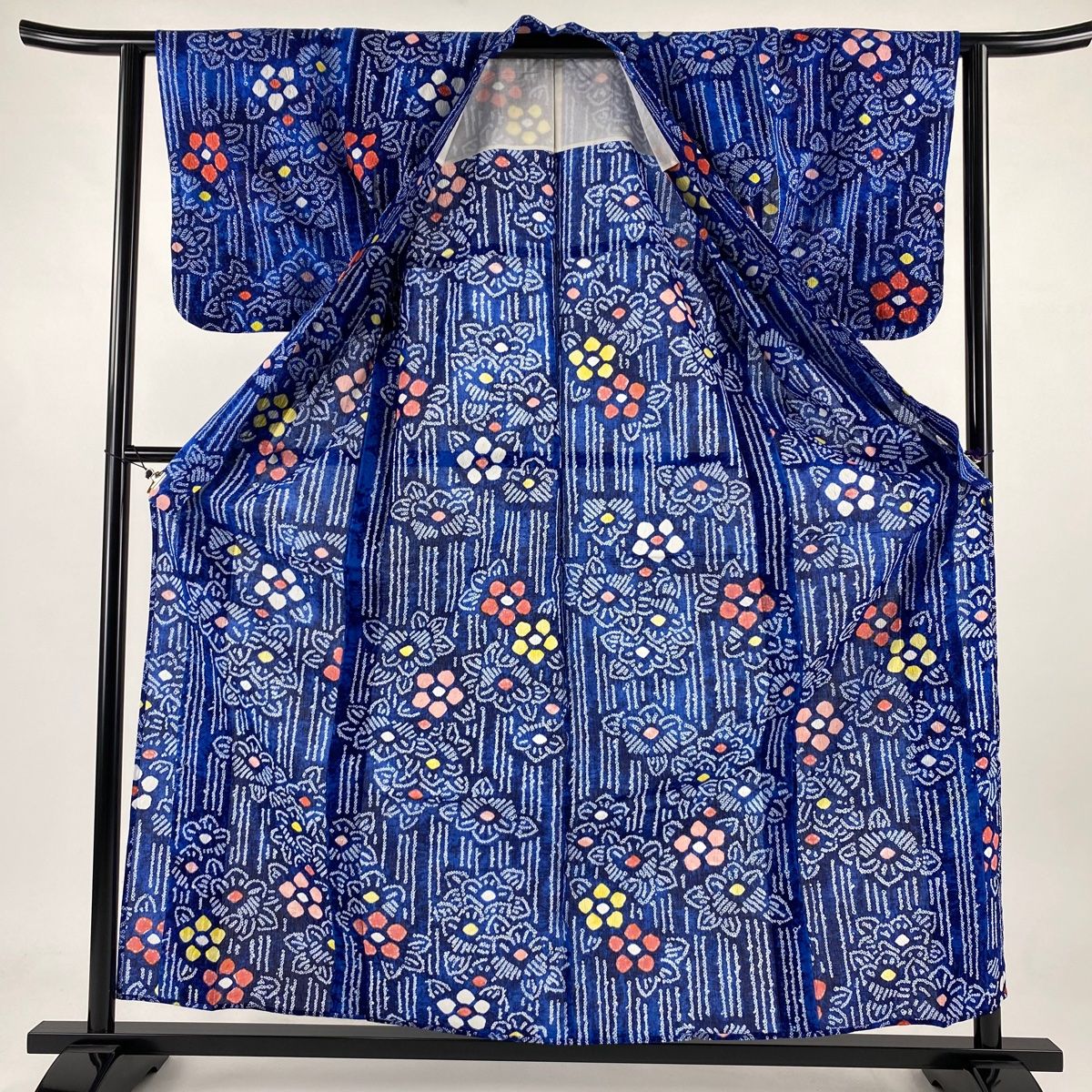 浴衣 身丈160 cm 裄丈62 S 絞り浴衣 草花 縞 紺色 綿