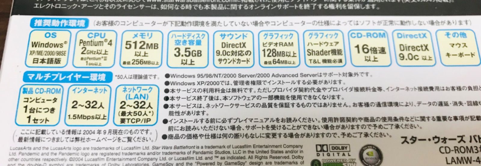 PentiumIII/1GHz以上,メモリ 256以上,HDD空き容量 3.5GB以上,サウンドカード DirectX 9.0c以降に対応したサウンドカード,ビデオメモリ 64MB以上,ハードウェアProgrammable Shader機能・ハードウェアT&L機能を備えたビデオカード,DirectX 9.0c以降