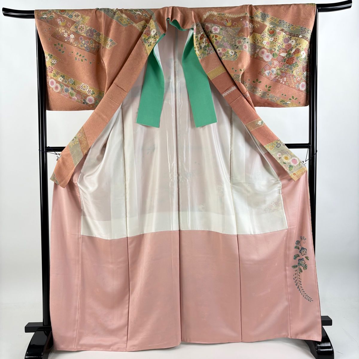 訪問着 身丈167.5 cm 裄丈67 M 袷 菊 宝尽くし 金彩 サーモンピンク 正絹