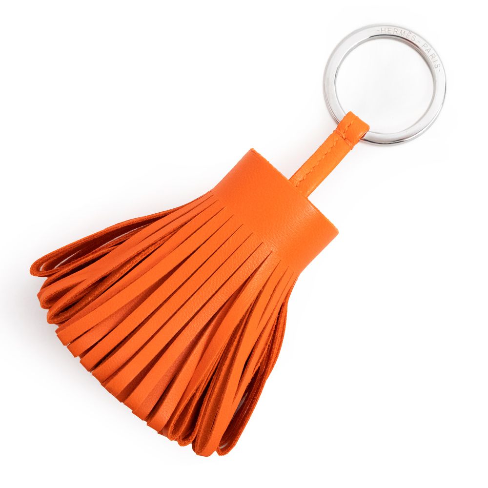 エルメス カルメン キーホルダー キーリング バッグチャーム アニューミロ ラムスキン レザー シルバー金具 フー オレンジ W刻印 HERMES
