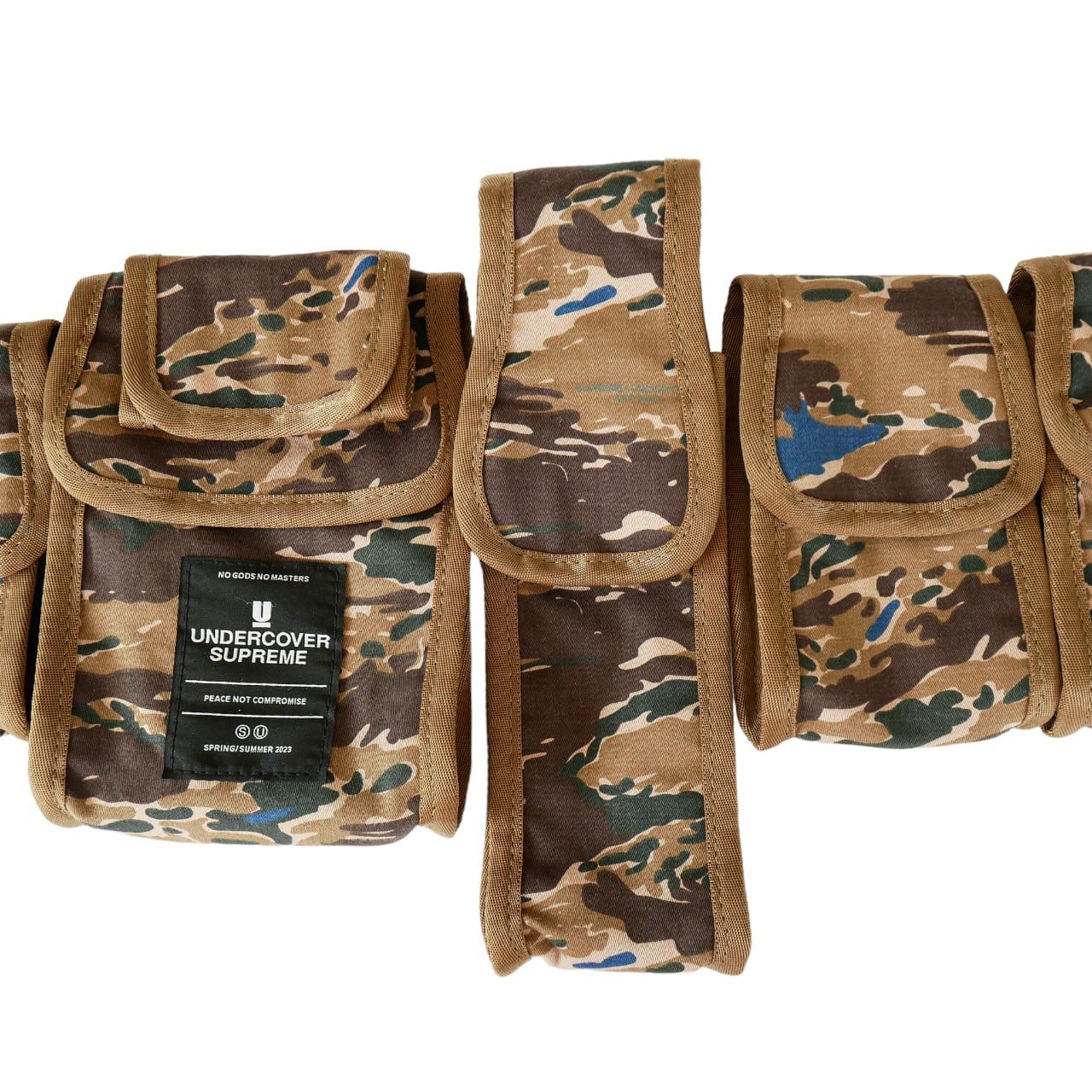 アンダーカバーの名作のベルトバッグをカモフラ柄にしコラボのパッチが付いています。