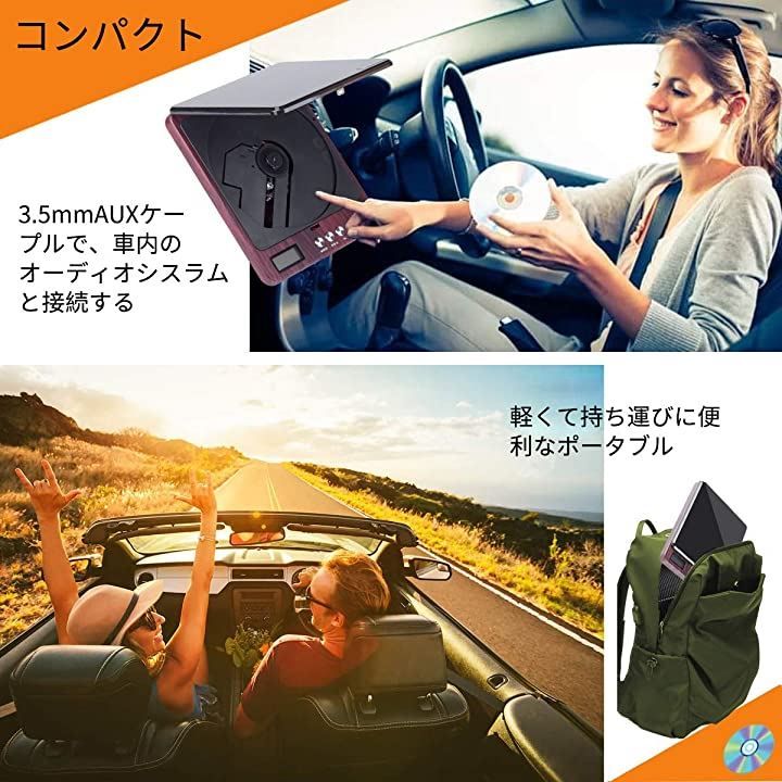 ALTENG CDプレーヤー ポータブル 音飛び防止機能 1500 mAh充電バッテリー LCDディスプレイ 軽量 ワイヤー制御 AUXケープル付き CD CD-R CD-RW CD-DA MP 3 WMA Discなど対応 赤