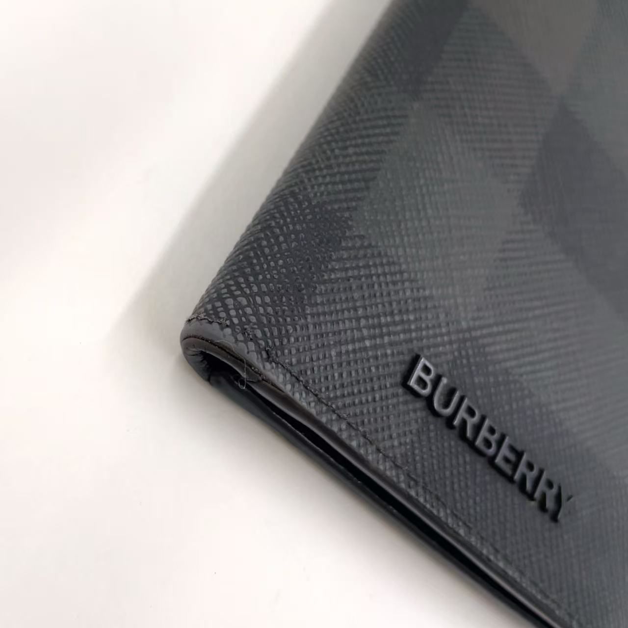 【商品名】BURBERRY チェック柄 レザー グレー×ブラック カードケース