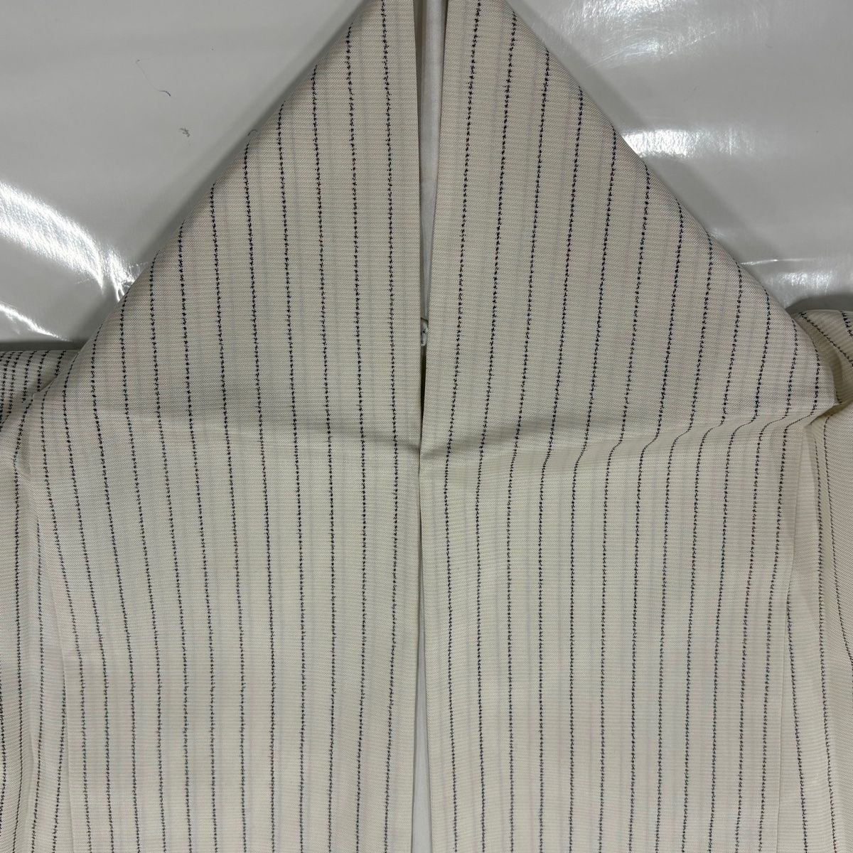 紬 身丈164 cm 裄丈68.5 L 袷 縦縞 クリーム 正絹 秀品