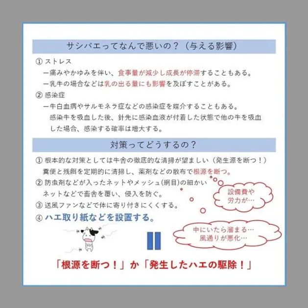 サシバエ 対策 トラップ 駆除 捕獲 捕虫 誘引 ハエ取り紙 牛 ウシ 牛舎 馬 ウマ 厩舎 山羊 ヤギ 牧場 豚 ブタ 養豚場 鶏 ニワトリ 養鶏