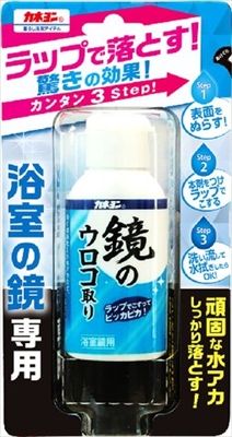 鏡に付いた水あか、ガンコな汚れをしっかり落とします。優れた特性を持つ崩壊研磨剤を使用。