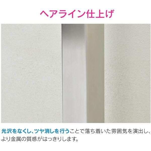 ●ヘアライン仕上げで、光沢のないツヤ消しの表面が落ち着いた雰囲気を演出します。