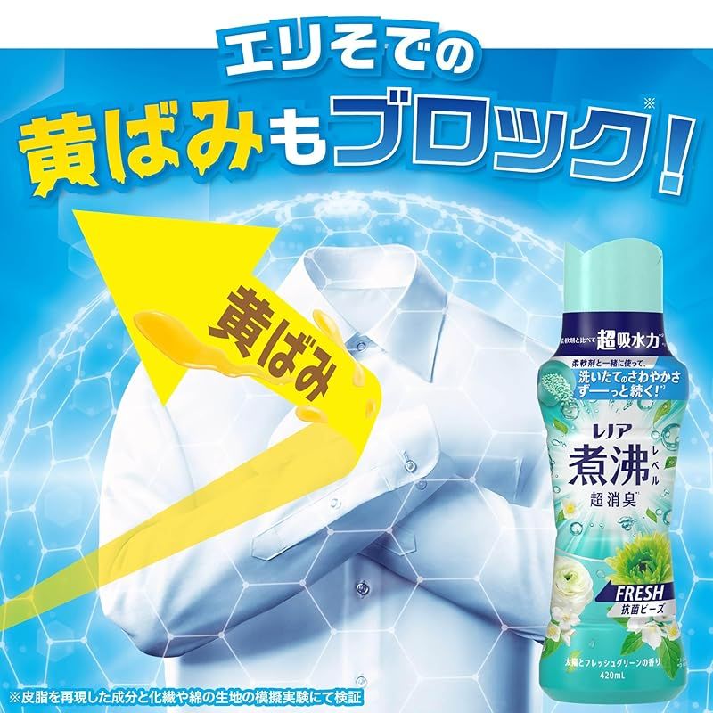 Lenor レノア 煮沸レベル超消臭 抗菌ビーズ FRESH 太陽とフレッシュグリーンの香り 詰め替え 1410 mL 5袋 ケース品 柔軟剤と一緒に使って効果長続き