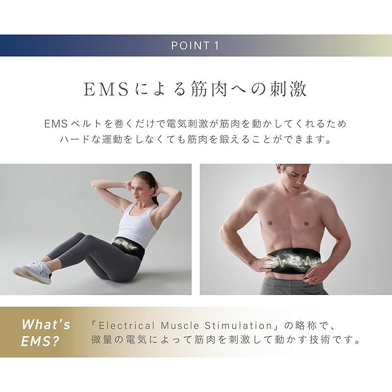 【筋肉の奥深くにアプローチしながら、トレーニング効果をサポート】電気で筋肉の奥深くを刺激することで、効果的な運動をサポートするEMSベルトです。2つの電気パッドが広範囲を一気に刺激し、深く・広い筋肉にまで届きます。