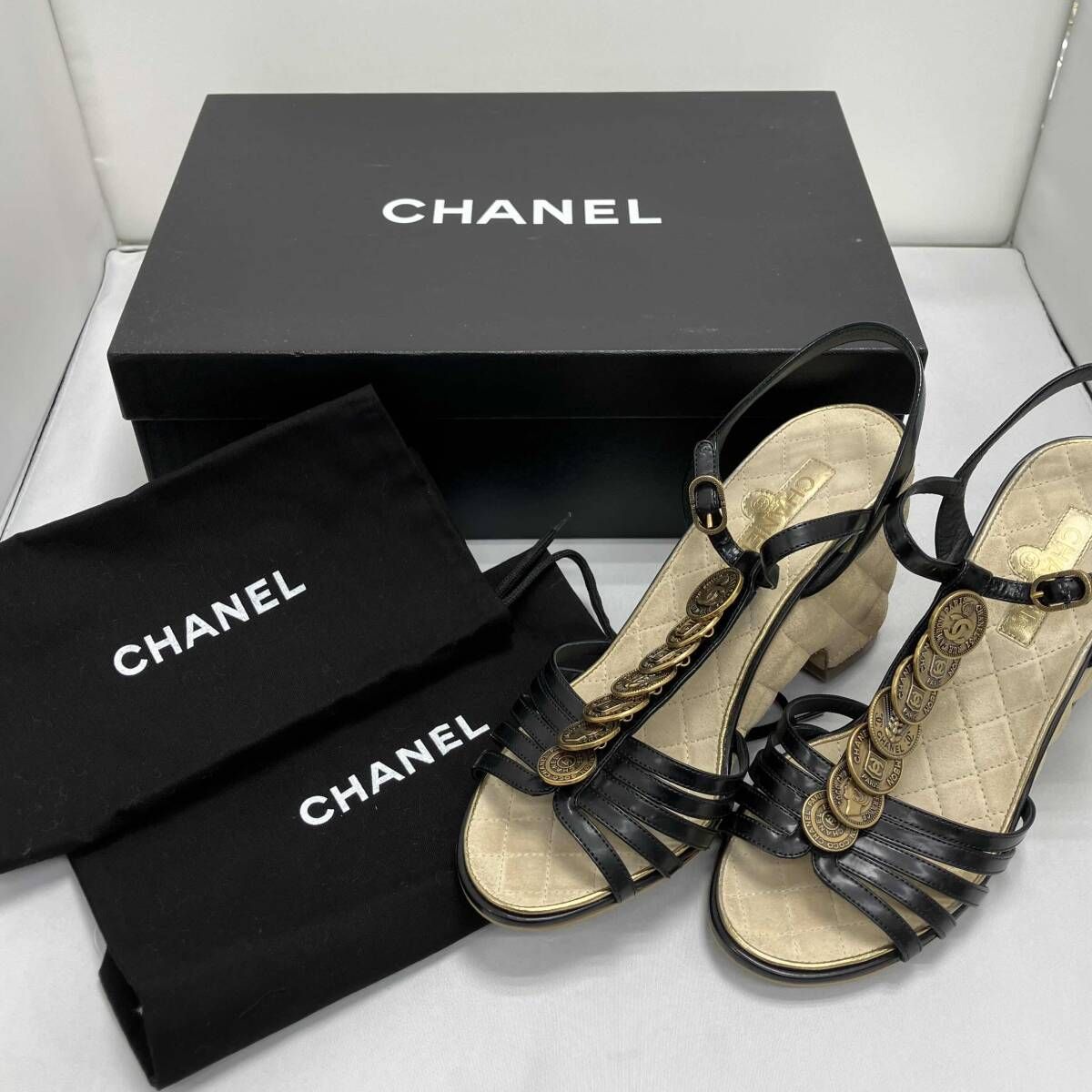 CHANEL サンダル ウェッジソール コイン サイズ37 約24 cm ソール張替え 保存箱 袋付 レディース 女性用 靴 シャネル