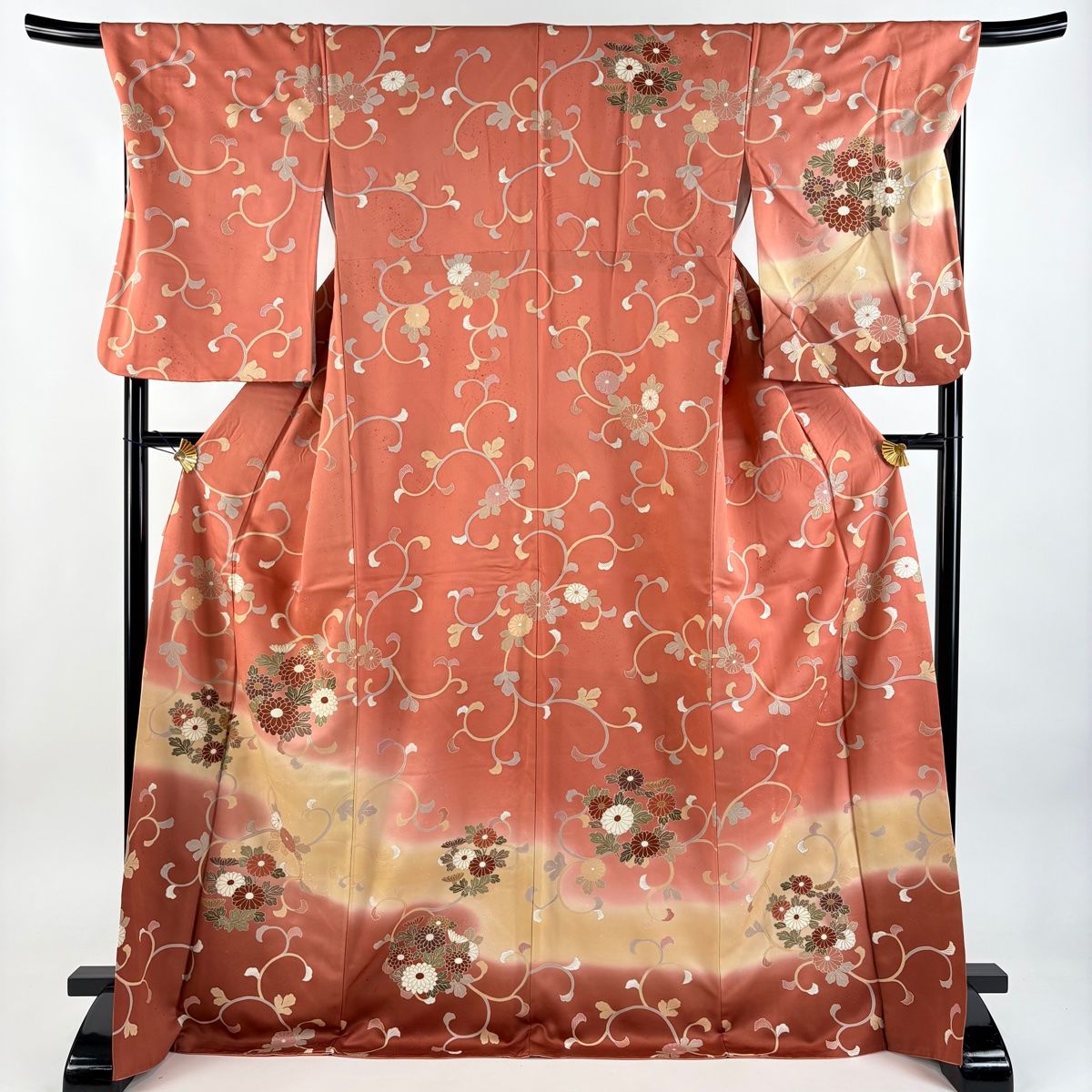 訪問着 身丈171.5 cm 裄丈68.5 L 袷 花丸文 菊唐草 金彩 ぼかし サーモンピンク 正絹 秀品