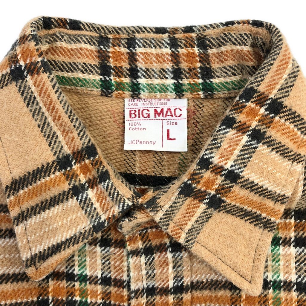 70年代 BIG MAC ビッグマック ヘビーフランネルシャツ ヴィンテージ チェック ベージュ メンズ L 古着 V 6114