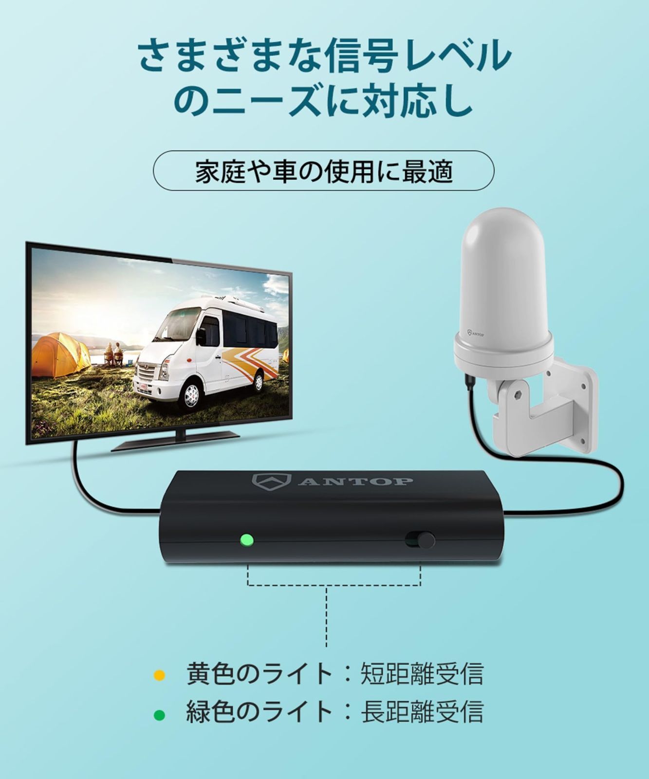 地デジアンテナ Antop テレビアンテナ 屋外 50-65 KM 受信範囲 360度全方位受信 アンテナ TVアンテナ 設置簡単 USB式 小型軽量 ブースター付き