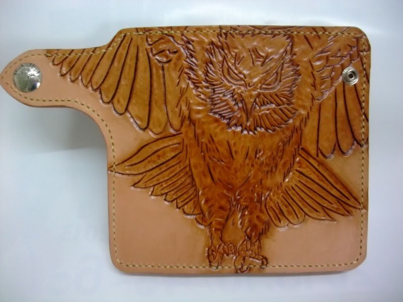 スーベルカッターやスタンプ等を使い革に彫刻をし、任意の造形を作り出す Leather Carving(レザーカービング)