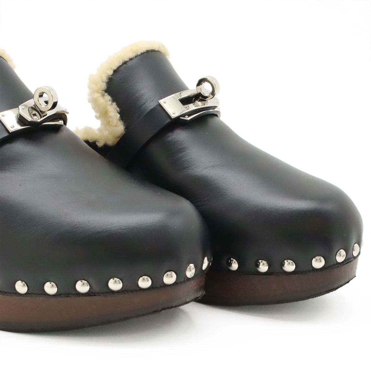 HERMES エルメス カルロッタ ケリーベルト サンダル サボ ミュール レザー ボア ブラック 黒 シルバー金具 35 日本サイズ約22.5 cm