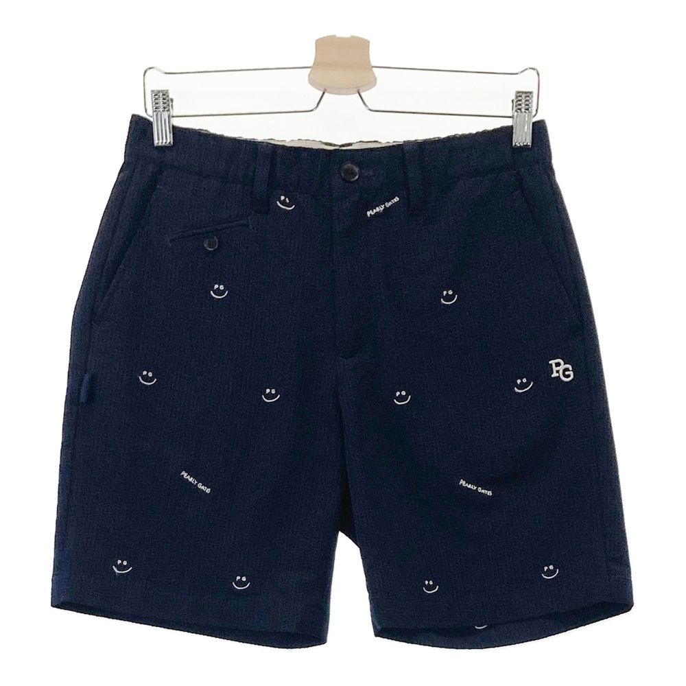 サイズ 4 PEARLY GATES パーリーゲイツ ハーフパンツ シアサッカー ニコちゃん総柄 ネイビー系 ゴルフウェア メンズ ストスト