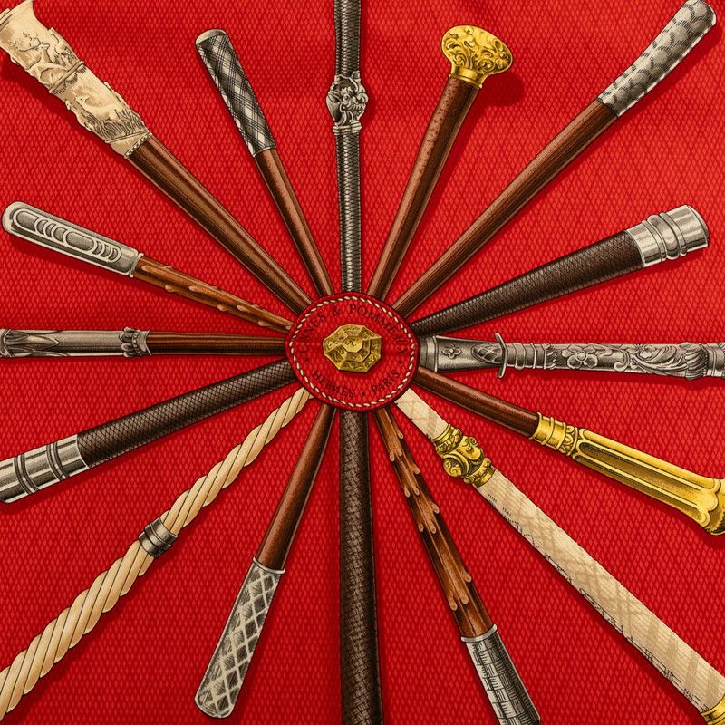 エルメス カレ90 Cannes et Pommeaux ステッキ レッド ネイビー マルチ シルク レディース HERMES 1-0233396