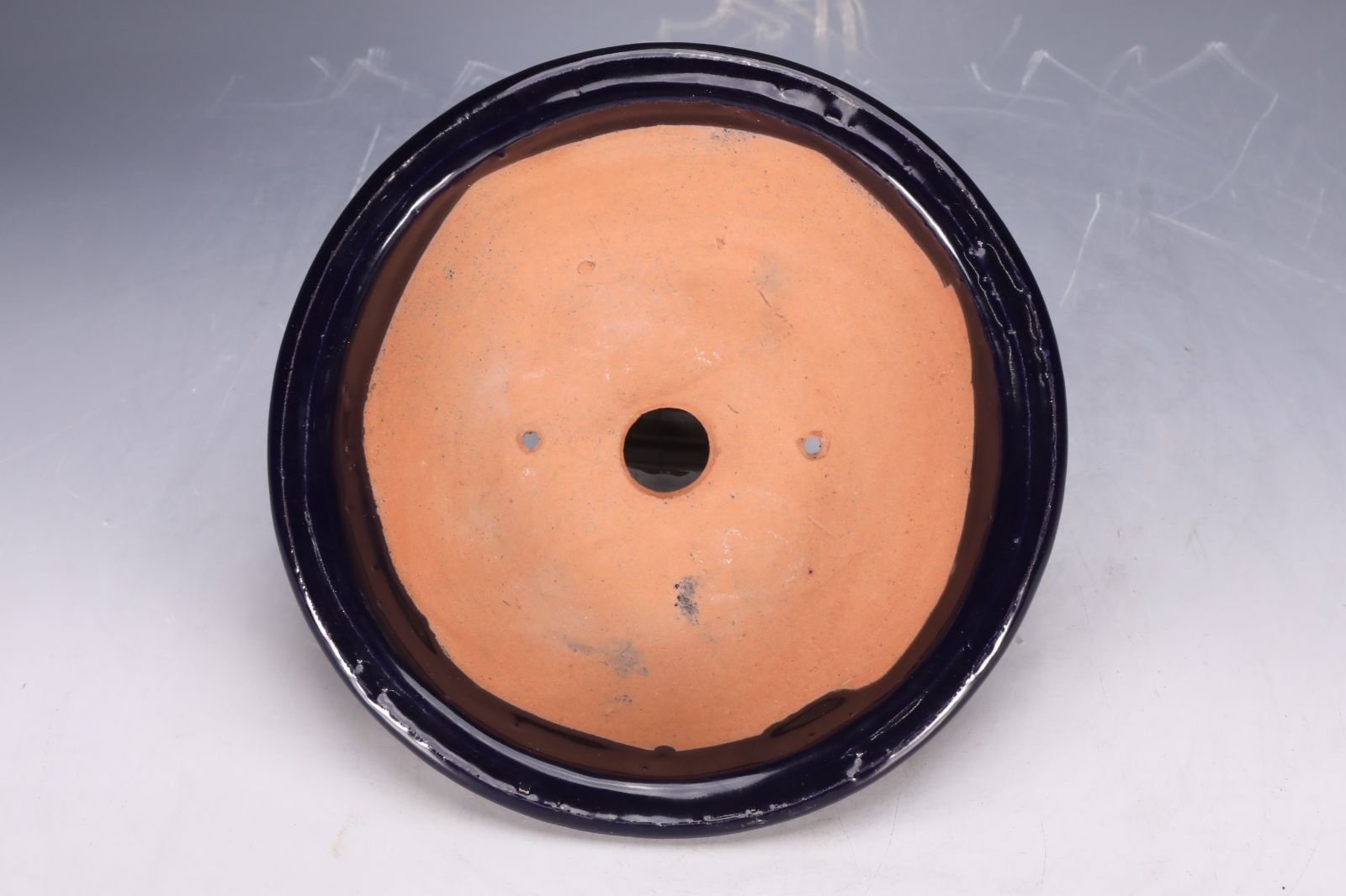 濃い青色の丸い鉢
