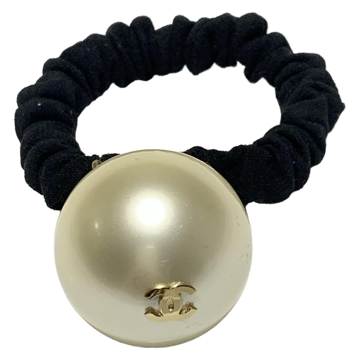CHANEL シャネル ココマーク 黒×アイボリー ヘアゴム ゴールド金具