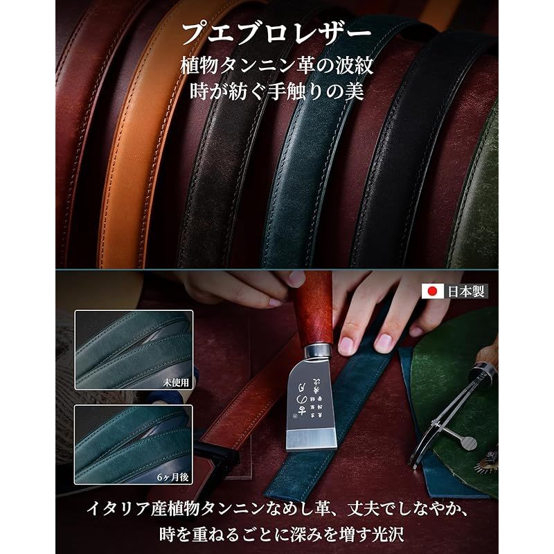 【しなやかで頑丈な紳士ベルト】抜群の耐久性と柔軟性を兼ね備えたプエブロレザー製メンズベルト。サイズ調整可能な目盛り付き設計で、大きいサイズにも対応。シンプルながら頑丈な金属バックルは長く美しい輝きを保ち、変形の心配がありません。