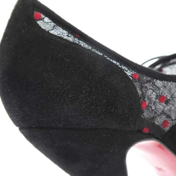 ■採寸#38日本サイズ約25cmヒール13cm甲幅7cmルブタンよりレースアップブーティーが入荷しました。編み上げと赤がポイントのレースで女性らしさの組み合わせが素敵です。ヒールはやや高めですがパーティなど華やぐこと間違いなしです。スエードなので左ヒールに起毛が見られます。右外側と左内側にスレがあり、足底は左右ともに汚れがあります。どうぞお気軽にお問合せくださいませ。
