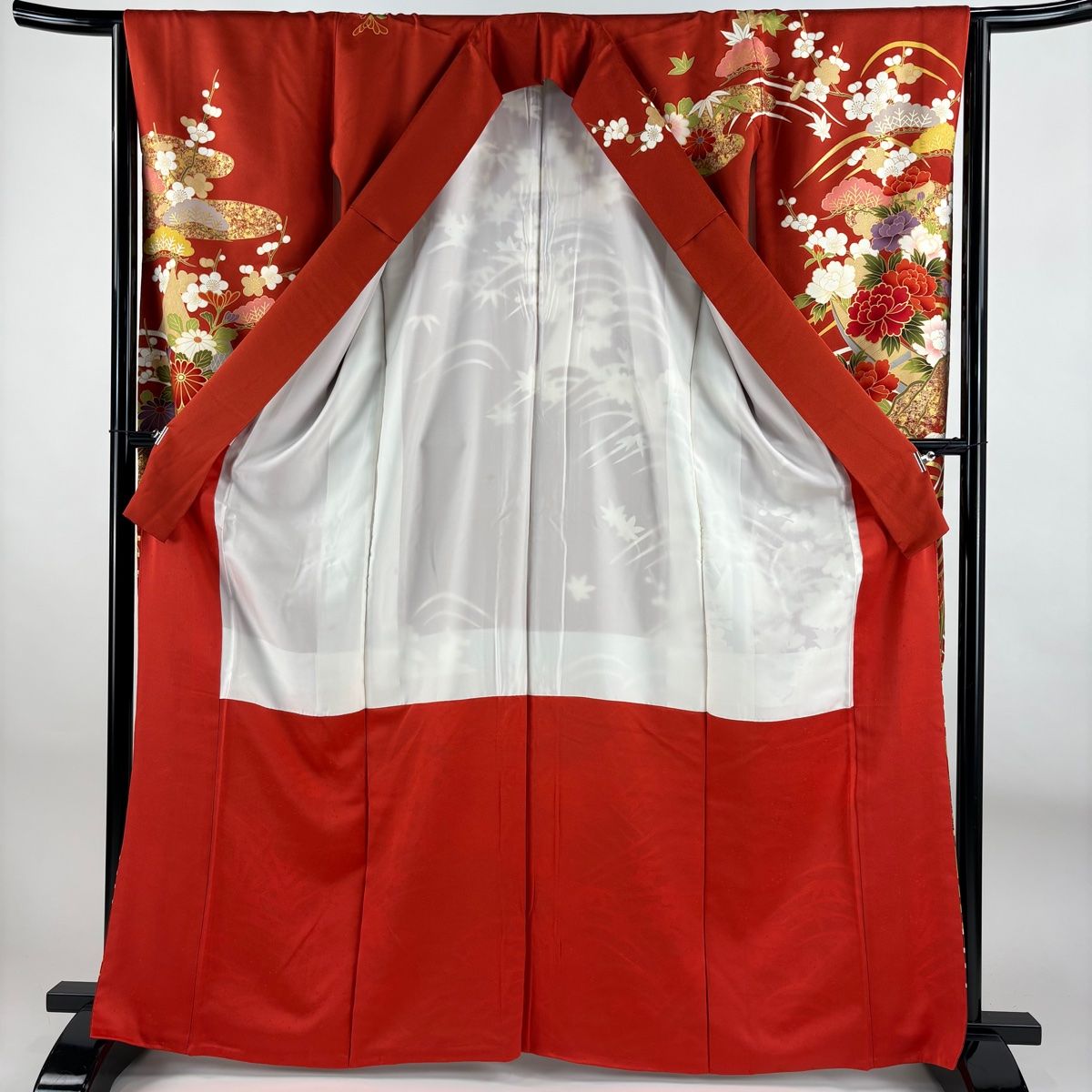 振袖 身丈165.5 cm 裄丈65 M 袷 草花 松竹梅 金銀彩 赤 正絹