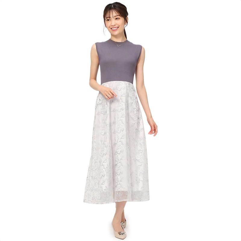 [ミッシュマッシュ] ワンピース レディース リブニット レース ドッキング 花柄 フレア フレンチスリーブ フェミニン MM437402 GREY