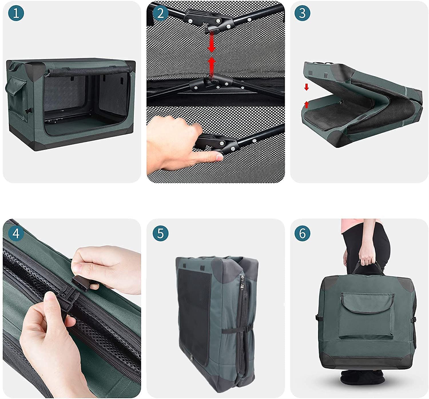 猫用キャリー カート 持ち手付き 犬用クレート 犬猫兼用 犬ケージ 折りたたみ簡単 室内休憩 急な来客時 アウトドア 病院 キャンプに大活躍 折りたたみペットケージ ball L Totoro ダークグリーン