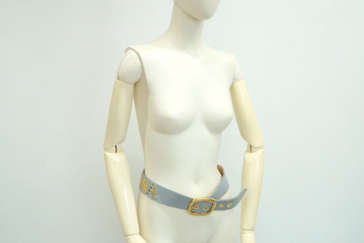 ドルチェ-ガッバーナ 80 32 ワイドベルト スタッズ ロゴバックル スエードレザー 水色 ブルー Dolce-Gabbana 4256 k
