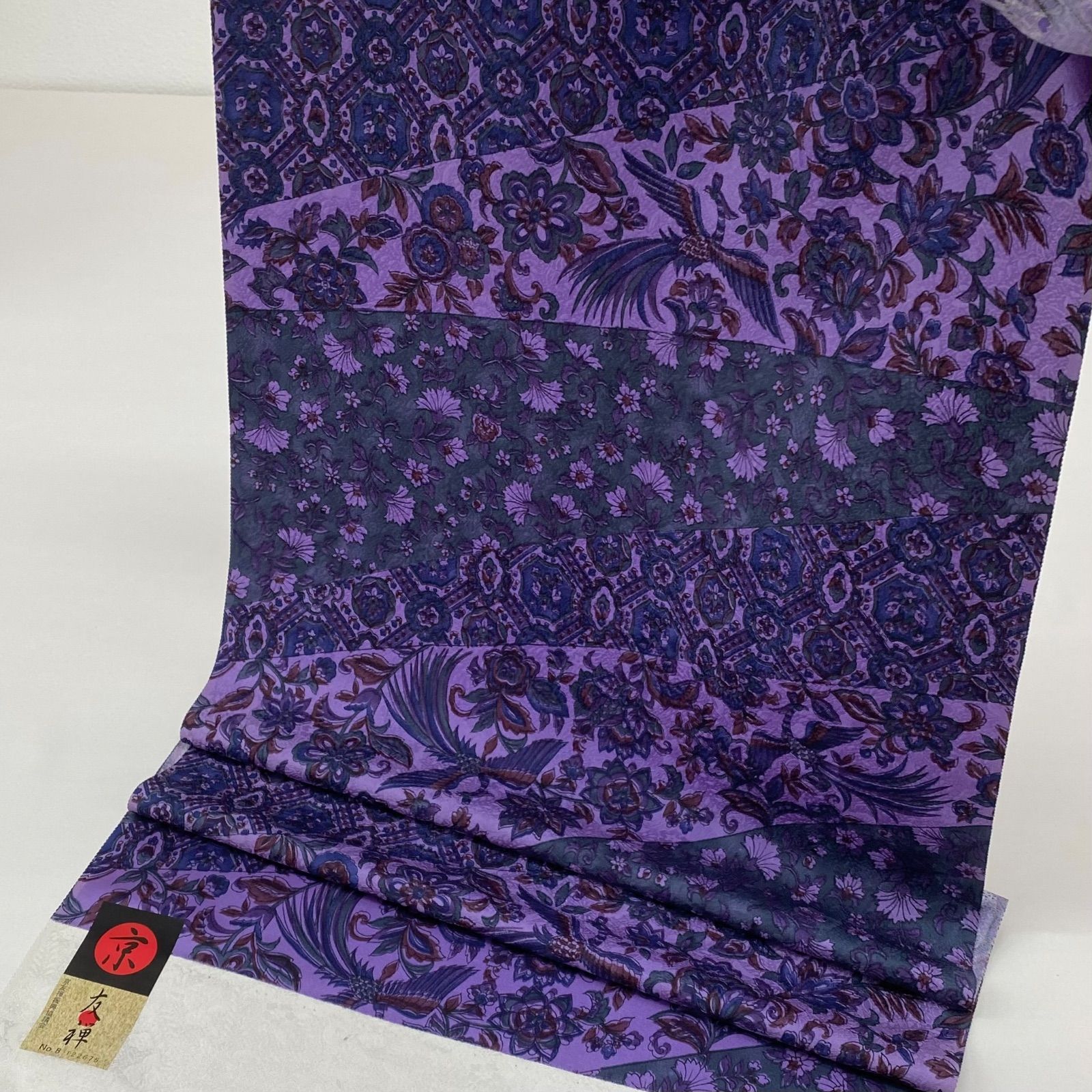 小紋 京友禅 更紗 紋意匠 鳥 反物 正絹 T 9033